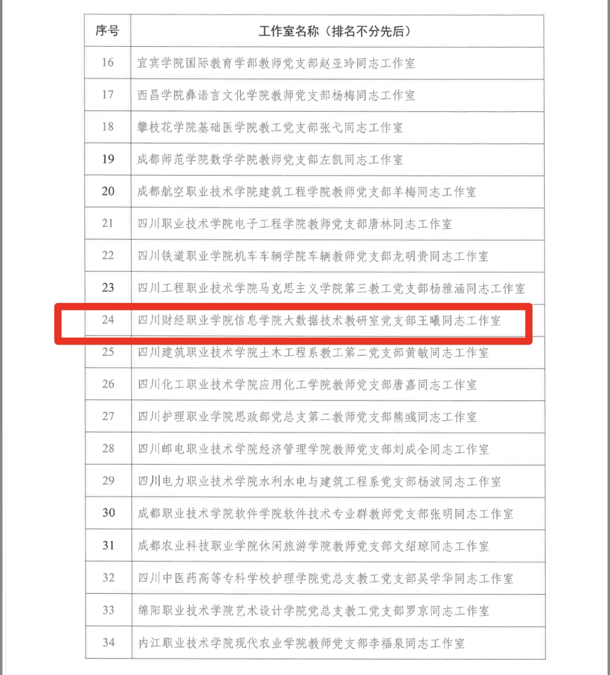 近日,省委教育工委公布第二批新时代四川高校党建示范创建和质量创优工作遴选结果,学校党委入选“四川高校党建工作示范高校”培育单位,信息学院大数据技术教研室党支部王曦工作室入选四川高校“双带头人”教师党支部书记工作室培养单位。