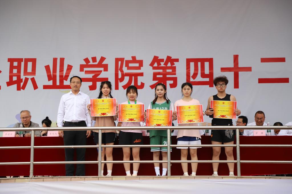 随后,肖兆飞副院长宣布男子4X100米、女子4X100米前三名成绩并颁奖;罗潇副院长宣布团体成绩并颁奖;钟用副院长宣布荣获体育道德风尚奖班级名单并为代表颁奖。