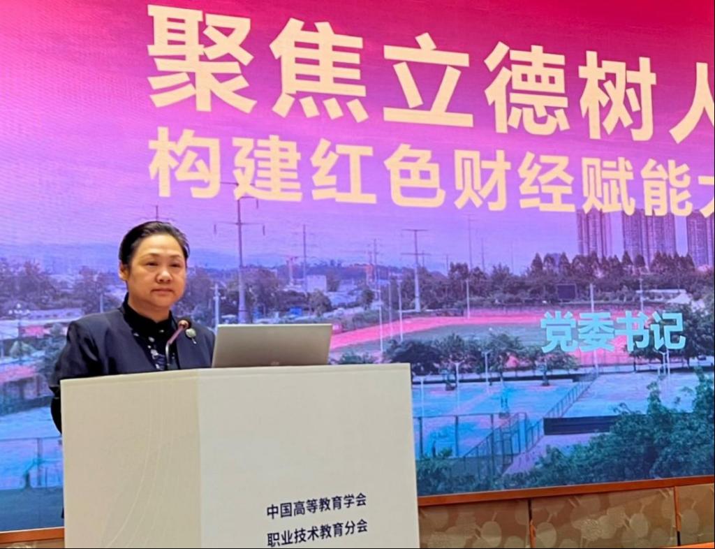 在交流发言阶段,张华书记以“聚焦立德树人根本任务 构建红色财经赋能大思政育人格局”为题进行分享交流。她总结了学院遵循习近平总书记“要用心用情用力保护好、管理好、运用好红色资源”的重要指示精神,探索红色财经文化赋能的“333”大思政育人格局的特色经验与典型做法。一是坚定理论筑底,打造红色财经文化研究、党建与思政研究、课程思政教学研究“三中心”;二是坚守合力凝聚,打造红色财经文化馆、红色财经文化论坛、非遗文化体验馆“三平台”;三是坚持融合贯通,推动红色财经文化向课堂教学、校园活动、社会实践“三融入”,不断丰富拓展富含红色财经元素的大思政育人场域,有效解决了理论基础不厚、平台聚力不实、路径融入不深的问题,助推学院先后荣获四川省党建示范高校、四川省“三全育人”改革试点院校、四川省首批特色马克思主义学院等建设成果。学院以红色文化培根铸魂、立德树人的工作经验受到与会专家和职教同仁广泛好评。