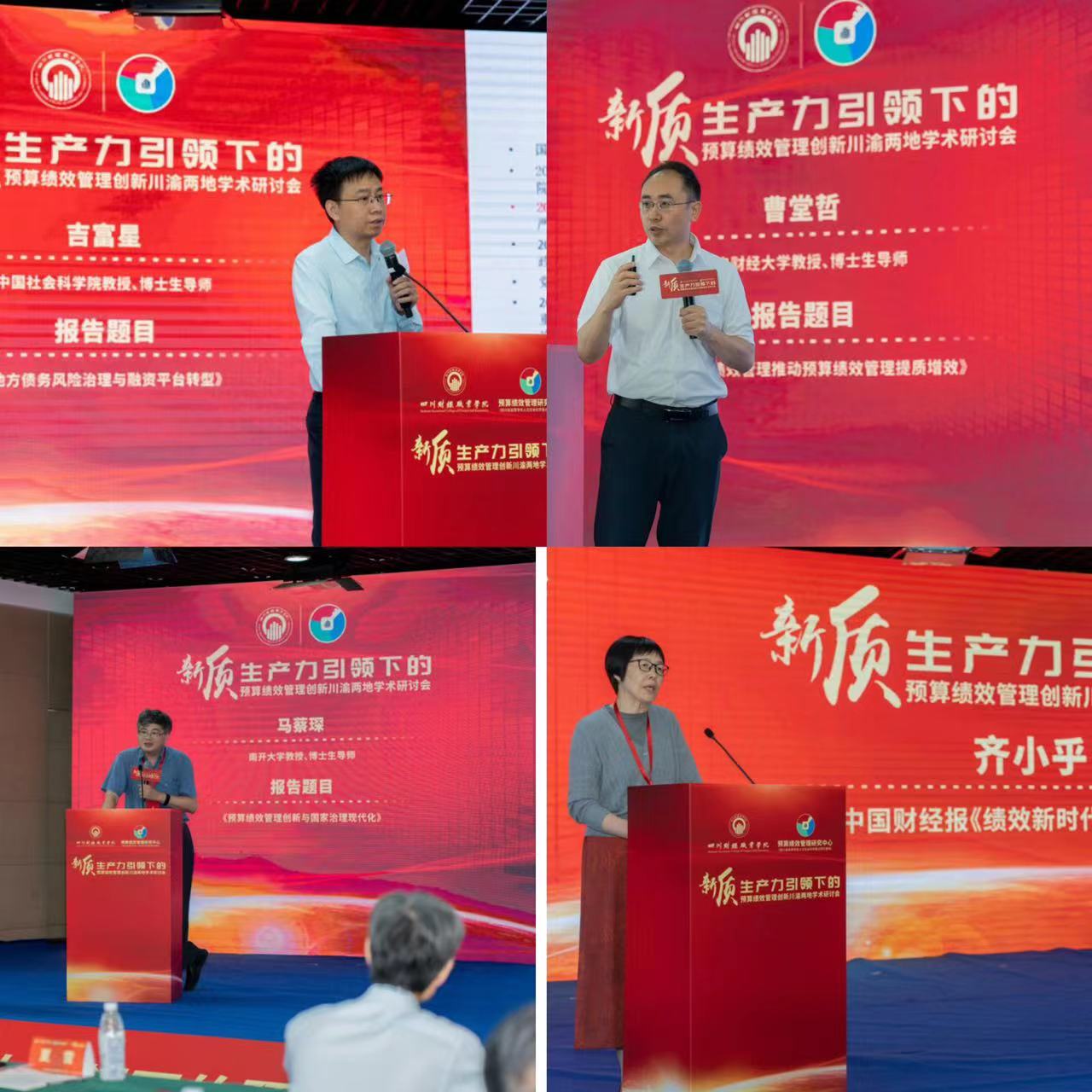 7月5日,由7790cnm必发集团、重庆工商大学共同举办的“新质生产力引领下的预算绩效管理创新”学术研讨会在学校明德楼308会议室召开,来自川渝两地40余所行政事业单位、高校、企业的77位领导、专家齐聚一堂,共同探讨新质生产力如何引领预算绩效管理的创新发展,以促进经济结构优化和提质增效。四川省人大预算委副主任委员夏雪、四川省人大常委会预算工委副主任刘俊梅、四川省人大常委会预算工委预算审查监督处处长王海峰、四川省财政厅绩效处处长卢军任、重庆市财政局绩效中心主任余春兰、学院院长符刚出席会议。会议由学院党委副书记、纪委书记余俊任,重庆工商大学原校长、教授孙芳城共同主持。