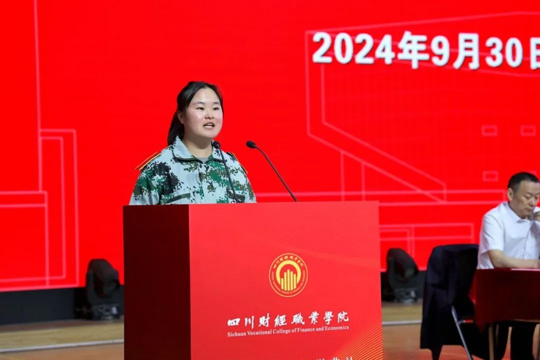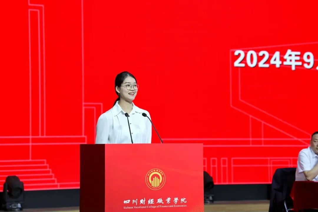 24级金融服务与管理1班罗静同学作为新生代表向辛勤耕耘在教育一线的老师们致以最崇高的敬意。罗静表示:“我们要珍惜这来之不易的学习机会,努力学习专业知识,提高自己的专业技能,培养自己的创新精神。衷心地祝愿各位同学在财院的舞台上发光发热,无怨无悔地度过自己人生当中最美好的三年,愿财院的明天更加辉煌灿烂。”