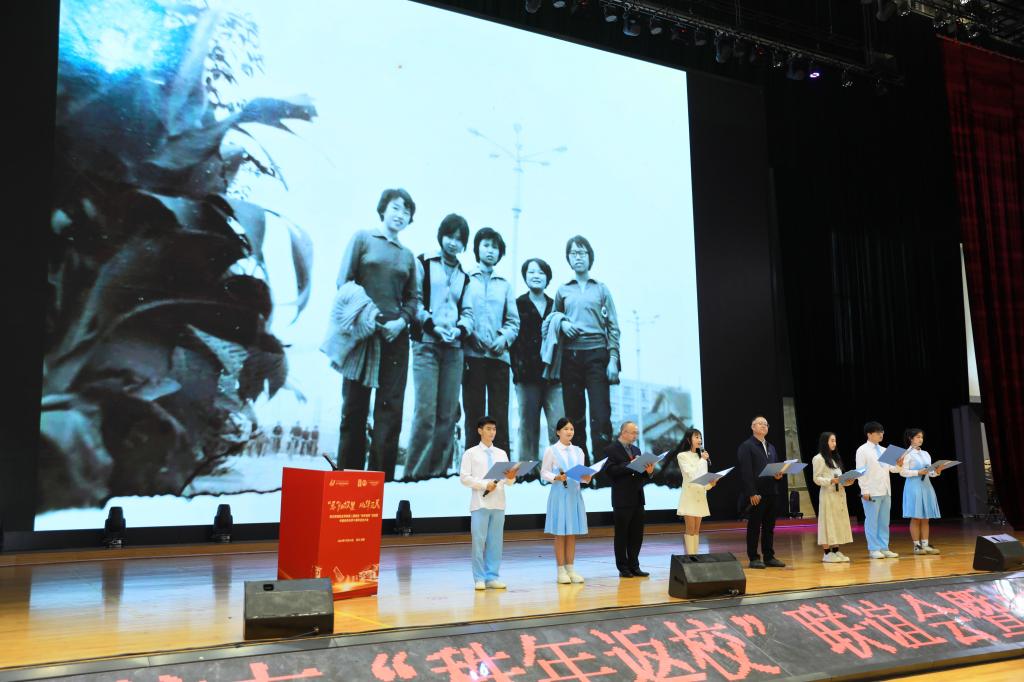 在校学生代表与校友代表带来了诗歌朗诵《薪火相传,再续华章》。几代人共同演绎着川财故事。当一张张老照片在大荧幕上闪过,校友们眼中的光芒饱含着对往昔岁月的怀念与眷恋。