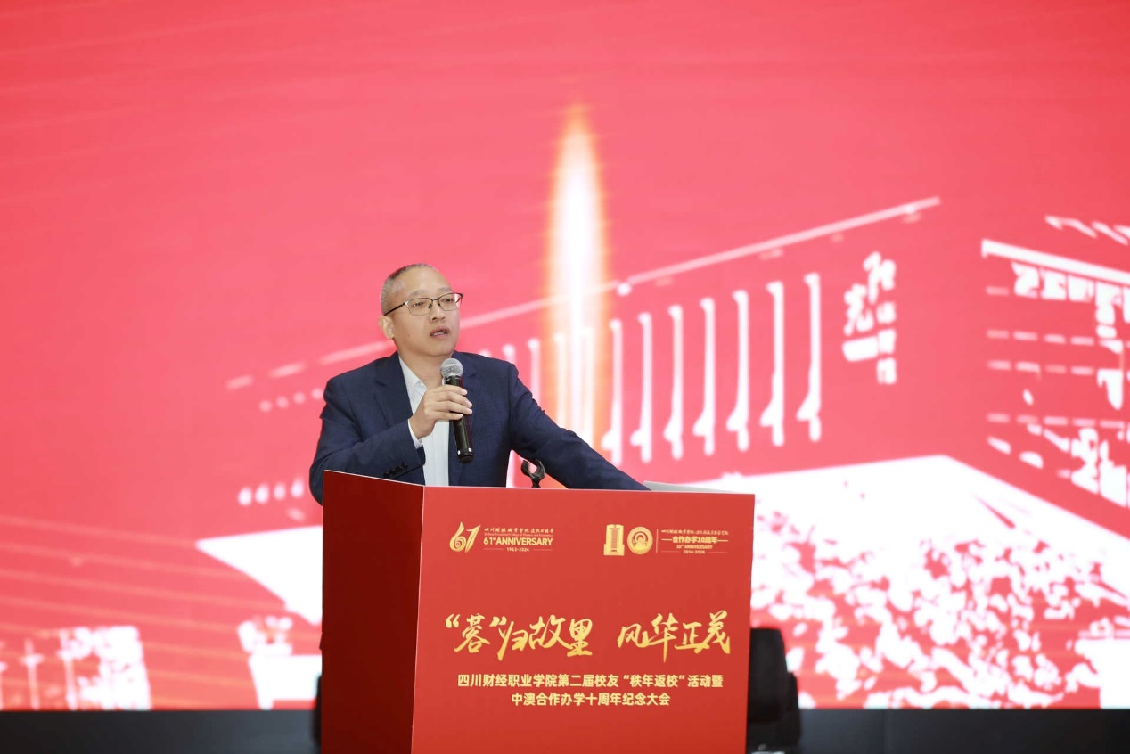 大会上篇章“阅尽千帆,归来仍是少年”中,学校党委书记张华致欢迎辞。她对专程返校回“家”的校友们表示热烈欢迎,介绍了学校的发展现状及近年来在教学、育人、校友工作等多方面取得的丰硕成果,肯定了校友们在国家经济社会发展中起到的重要作用。校友是学校最宝贵的财富,是推动母校发展的重要力量。她指出,一要紧扣大局求突破。学校将继续扎根财经行业,踔厉奋发,抢抓职业教育深化改革的新机遇,坚持立德树人纵深推进、服务区域创新发展、产教融合开放办学,聚焦党建与思政建设、国家新“双高计划”创建、红色财经文化品牌打造、专业结构布局调整、校区项目建设等关键环节、重点项目破冰突局,培养出更多财经类高素质技能人才服务社会发展。二要紧扣服务强组织。校友服务站是母校与校友联系的重要桥梁、纽带和平台。学校将充实校友工作力量、建强校友平台、创新工作机制,用心、用情做好校友服务工作。组织开展经常性走访校友和校友企业活动,关心校友成长。各二级学院、各地校友服务站定期开展校友联谊活动,凝聚校友力量,增进校友感情。三要紧扣发展聚合力。一直以来,广大校友心系母校,关注母校发展,以各种方式支持、助力母校建设。学校打造母校与校友的发展共同体,希望广大校友有机会多宣传、推介母校,不断扩大学校的办学声誉和影响力,同时,也希望校友企业通过开展双方合作、吸纳毕业生等多种形式,助推学校事业高质量发展。