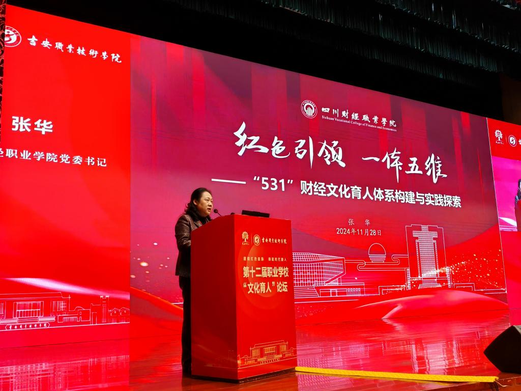 11月28日-29日,第十二届职业院校“文化育人”论坛在江西吉安召开,来自全国219所职业院校的领导、专家齐聚一堂,以“赓续红色血脉 铸就时代新人”为主题,共商职业院校“文化育人”之道。论坛由教育部职业院校文化素质教育指导委员会主办,吉安职业技术学院承办。学院党委书记张华受邀出席并作经验交流。