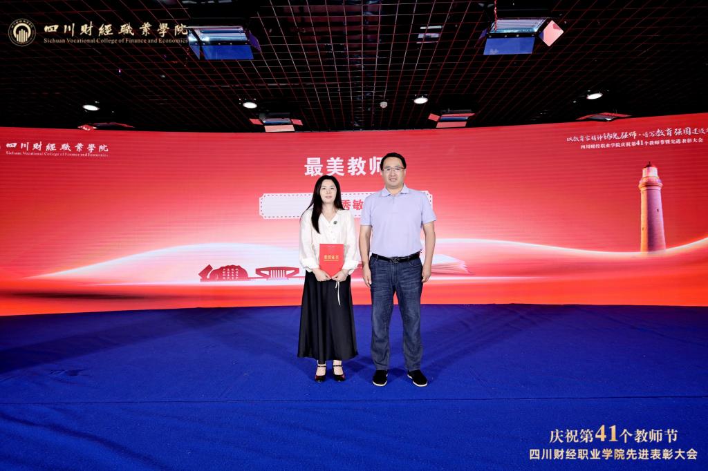 获奖教师代表李馨分享育人故事,学生代表上台表达对老师的感恩之情。学院将以教育家精神为引领,持续推进教师队伍建设,优化教师发展环境,营造尊师重教良好氛围,共同书写教育强国建设的财院新篇章!