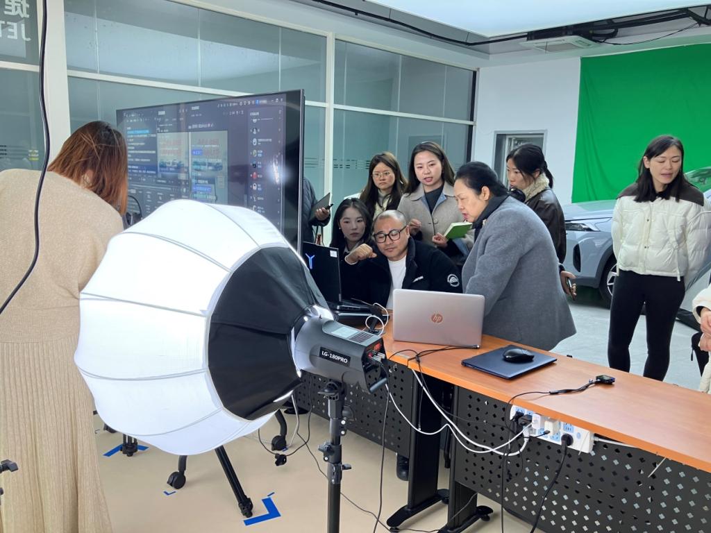 当日下午2点,张华一行抵达捷达公司,在企业人力资源科工作人员引导下开启交流行程。首站参观了焊装与总装车间,在车间负责人陪同下,老师们近距离感受了高度自动化、智能化的精益生产流程,直观体会现代制造业的科技魅力,为后续教学与产业衔接积累了鲜活素材。随后,他们前往公司新媒体中心,新媒体营销经理张颖及团队详细介绍了中心以直播为核心的运营模式、内容生态及实习生培养体系。恰逢我校2023级电子商务订单班两名学生正在开展直播营销实践,张华书记驻足观摩,详细询问直播数据流情况,与学生亲切交谈,对他们的优秀表现给予肯定,同时认可校企精准对接产业需求、联合培养新媒体人才的模式,并提出深化协同育人的要求。