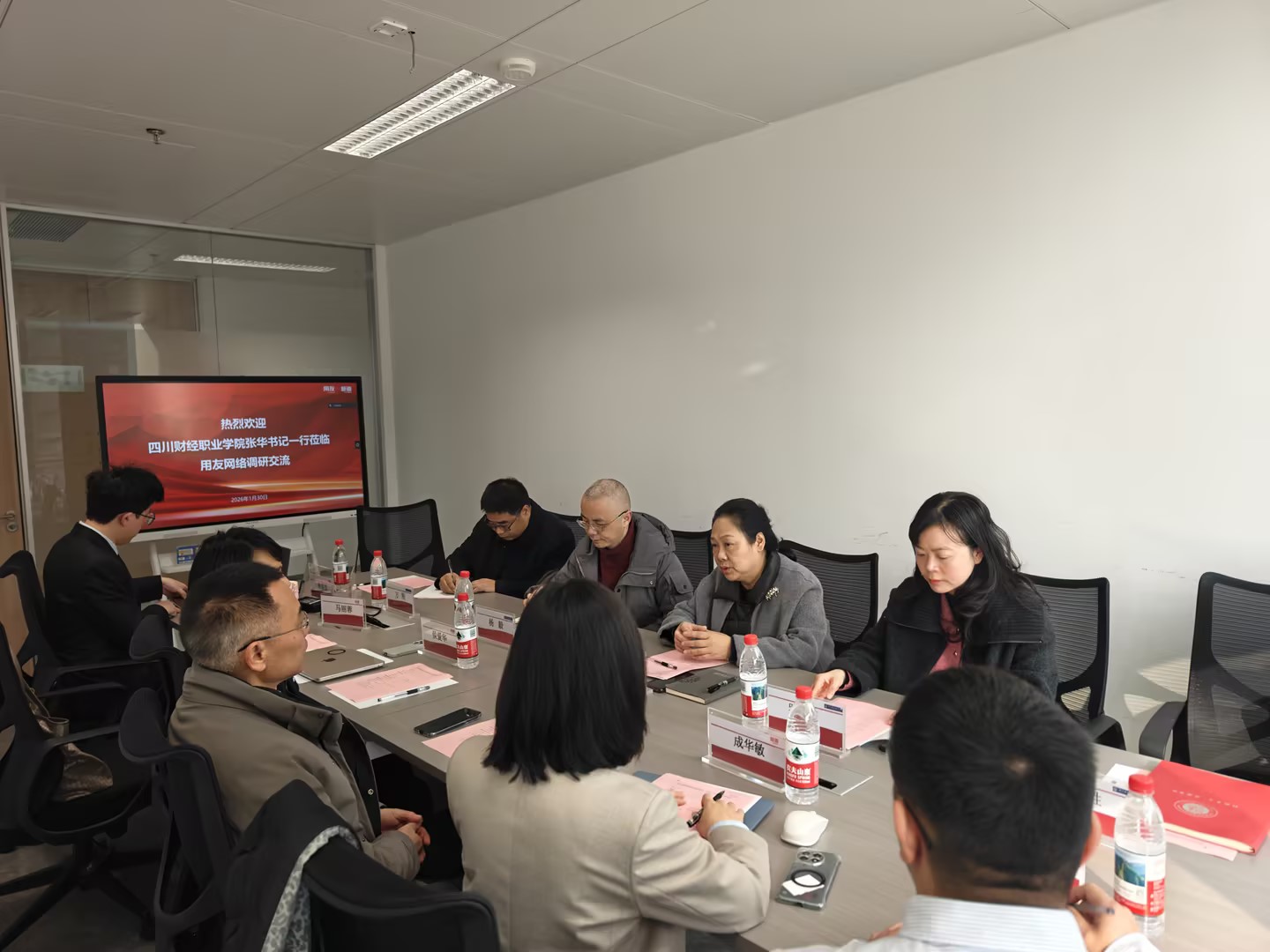调研会上,张华首先对用友长期以来给予我校教育教学改革、人才培养及学生就业工作的大力支持表示衷心感谢,对用友在助力企业降本增效、赋能企业数字化转型与智能化改造方面取得的突出成果给予高度评价。她指出,我校深耕职业教育领域,服务社会基础扎实、优势独特,近年来始终坚持产教融合、校企合作发展路径,持续加大服务区域经济社会发展力度,在绩效评价、政府采购、财税咨询等领域发挥了示范引领作用,积累了丰富的实践经验。张华强调,希望双方立足各自优势,进一步聚焦四川省六大优势产业发展需求,围绕真实产业场景破解发展难题,加快推进可落地、可赋能的项目化产品与服务合作;同时,在拓宽学生就业渠道、引进培育产业导师等方面探索新路径、挖掘新契机,推动校企合作走深走实。
