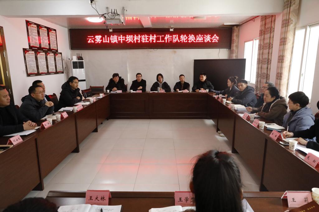 随后,调研组一行前往云雾山镇,调研组前往金龙村开展了慰问活动,并在中坝村召开驻村干部轮换暨新春慰问座谈会。会上,云雾山镇党委书记赵强汇报了乡村振兴工作情况,原驻村第一书记张玮总结了帮扶成效,学院党委委员、组织部部长郑代富介绍了新任轮换驻村第一书记邵先奎、驻村队员高霞的情况。邵先奎、高霞也分别作了表态,郑重承诺将扎根基层、真抓实干。