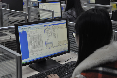 与其他比赛热闹的氛围不同,这一场会计信息化大赛是由参赛选手在电脑上进行会计电算化工作。比赛现场只有嗒嗒嗒的键盘敲击声与啪啪啪的鼠标点击声,每一位参赛选手的眼神都集中在电脑显示屏上,专注的完成屏幕中的试题。也是这样的安静,让比赛现场呈现出一种紧张、严肃的气氛。
