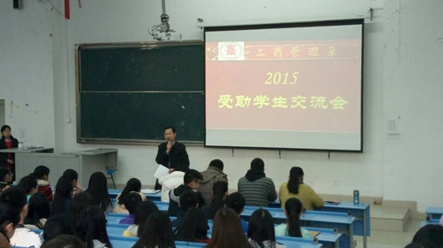 2015年12月17日中午,工商管理系在B113教室举行了“201年受助学生交流会”。参加会议的有我系党总支李平书记、辅导员刘澎老师、李博老师、刘潇雨老师,以及我系全体受助的同学们。会议由学生党支部书记陈秀丽老师主持。