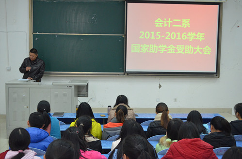 国家助学金是党和政府为家庭经济困难的普通高校学生设立的专项资金,旨在帮助同学们顺利完成学业,激励同学们勤奋学习、努力进取。学院按照教育部、省教育厅资助中心要求,认真贯彻落实文件精神,开展了2015-2016学年国家助学金的宣传及评审工作。学院财税金融系、会计一系、会计二系、工商管理系、会计信息管理系于2015年12月分别组织召开了国家助学金受助大会,各系学生支部书记、辅导员、受助学生参加会议。财税金融系党总支书记祝刚、会计一系党总支书记杨勇、会计二系党总支书记刘波、工商管理系党总支书记李平、会计信息管理系党总支书记张晋红高度重视此次会议,在会上分别作了讲话,强调了助学金“公开、公正、公平”的评审原则;引导获得国家助学金的同学应正确认识贫困、积极应对贫困,将贫困视为一种历练,培养坚忍不拔的毅力,努力学习,用优异的成绩回报国家与学校的关怀与帮助,积极参加学校学院各项活动,起到模范带头作用。并希望同学们常怀感恩之心,诚信待人,志存高远,自强不息,做勇敢的追梦者。