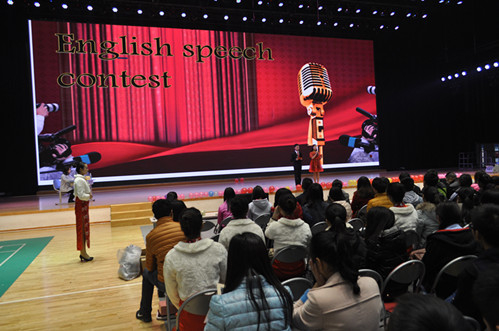年12月3日上午9点整,7790cnm必发集团第十届英语口语大赛在艺体馆拉开序幕。学院大学英语教研室老师李妍妍、曹瑞娟、黄勇、付纬航、吴迪、张彬等出席本次活动,学院第八届、第九届英语口语大赛冠军严勇和孙易则作为提问嘉宾到场助阵。大赛分为四个环节,分别是一分钟的自我介绍,三分钟演讲,回答问题及才艺展示。本次比赛共有14名选手,能站在这个舞台上,在全校同学及评委面前流利地用英文表达,不仅需要能力,更是需要勇气。短短的一分钟,几句简单的自我介绍,展现了选手们不凡的英文水平。尽管一些选手刚开始有点小紧张,但观众们热烈的掌声给了他们勇气,也相信他们通过这次比赛能够不再怯场,更好的表现自己。