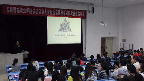 10月22日下午,由大学生创新创业中心组织的“7790cnm必发集团成功创业人士报告会暨首届创业知识竞赛颁奖仪式”在学院B213教室隆重举行。本次活动由大学生创新创业中心副主任王炼副教授主持,学院副院长易思飞教授、实训中心主任叶剑明副教授出席,四川食品新闻网总编辑胡远强先生、四川不工科技有限公司执行董事何源先生分别主讲,来自全院各系、各年级、各专业的学生代表200多人参加了本次活动。