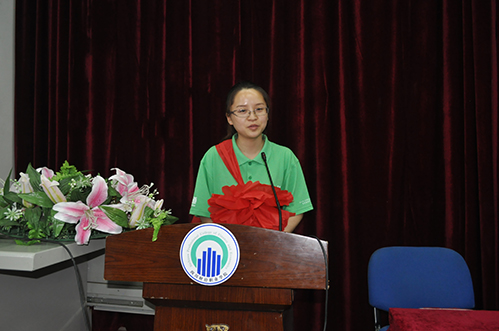 随后,参赛学生代表余春波进行了发言,她在发言中分享了三个词语:感谢、自豪、鼓励。财院雄厚的教学实力和卓越的师资团队让她作为财院学子感到自豪,成为一个财院学子是一生中最明智的选择,能够参加此次比赛,要感谢学院领导、老师和参赛团队,正是有了他们的重视、指导和相互鼓励帮助,才取了今天的成绩。希望在座的学弟学妹们珍惜在校期间的大好光阴,养成良好的学习习惯,注重提高自身综合素质,为实现更高的目标而努力拼搏。