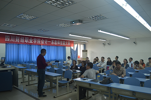 为加强师资队伍建设,适应现代教育教学革新的要求,切实提高教师教学能力和业务水平,大力推进教学创新,不断提高教学质量,4月16日,会计一系教师技能大赛在B409正式拉开序幕。会计一系党支部书记杨勇副教授、系副主任马会起副教授、李代俊教授、陈娟老师,企业会计实务教研室主任马红教授,会计基础教研室主任曾海帆副教授担任了本次比赛的评委,会计一系全体教师观摩了整场比赛。本次大赛还首次引入了学生评价,使比赛的评判更加客观公正。