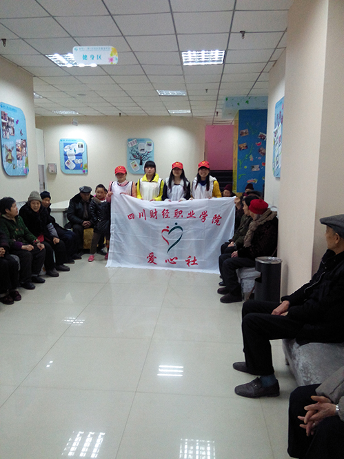 年3月11日下午1:30,学院爱心社张维、刘文萍、宋姗姗、赵远丽、竭阳等人迎着久违的温暖阳光坐上去资助育人实践基地——龙华二期社区服务中心的公交车。怀着兴奋而又忐忑的心情来到社区中心,此时沙发上的老人们正在看着电视剧《天龙八部》,继而对我们的到来表示热烈的欢迎,他们的掌声与欢迎声消除了我们心中的忐忑。首先,在社区工作人员的帮助下播放了我们精心挑选的养生视频“养生堂”节目,让社区老人们了解养生知识与正确的养生之道。其间,志愿者们分别和老人们进行心与心的交流,听老人们聊起过去的回忆与现在的美好生活。随后,是志愿者竭阳带来健美操表演,律动的音乐与舞动的身姿把老人们的目光积聚在一起。在其中一位老奶奶的强烈要求下大家唱起了经典老歌“甜蜜蜜”,熟悉的音乐,朗朗上口的歌词就连在场的老爷爷也一起唱一起摆动手臂打起节拍,或许甜蜜蜜代表的是老人们对美好生活的向往与感悟,同时也是我们对他们最美好的祝愿。接着,大家表演诗歌朗诵“我亲爱的祖国”,每一句诗词似乎都在触动着老人们内心,勾起了他们对于年代的回忆。志愿者赵远丽表演一段连环拳,刚中带柔的武姿引起了老人们好奇的眼神与热烈的掌声。随着志愿者宋姗姗与张维合唱歌曲“后来”声音的响起,那深情的歌声让众人沉静在另一片海洋感受流行音乐的动感。最后是志愿者刘文萍带来一段体育舞蹈,扭动的身姿与摆动的手势吸引了一位老爷爷,现场教学体育舞蹈获得大家的鼓掌与欢笑,两人的动作更让一些人笑弯了腰,不时发出阵阵笑声。