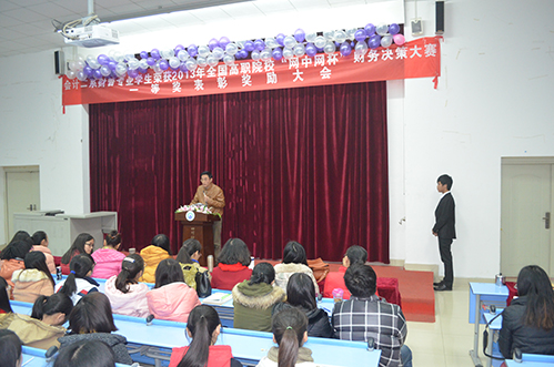 会计二系于2013年12月25日下午在B213隆重举行表彰大会,以表彰财务管理专业学生荣获2013年全国高职院校“网中网杯”财务决策大赛一等奖。系主任尹东、系党支部书记刘波、学生党支部书记吴琳、财务管理教研室主任张晋红、实习实训教研室主任呼桂霞、指导老师唐颖、兰寒及全系教师出席了本次表彰大会。