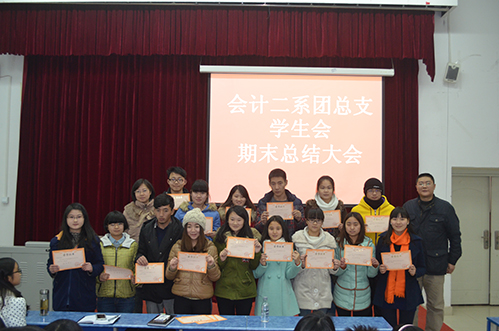 各部门总结结束后,刘波书记和吴琳老师为本学期工作中的优秀成员颁发了荣誉证书,鼓励同学们在下学期的工作中取得更好的成绩。刘波书记对本届团总支学生会的工作表示了充分的肯定,鼓舞人心的语言、热烈的气氛让大家看到了会计二系团总支学生会辉煌的明天。