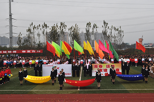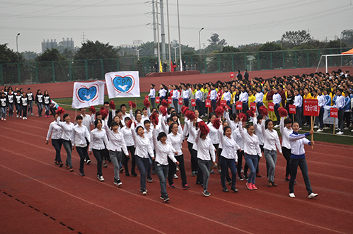 青春激昂,自信飞扬。在礼仪人员有序的指引下,一支支整齐有序的方队踏着青春的节拍,精神饱满地从主席台走过。他们步伐坚定、气宇轩昂:向大家展示着学子们的青春活力和蓬勃朝气。小雨袭人,秋风阵阵,但丝毫不影响运动员们的热情,丰富多彩的团体操表演正式开始。他们阵势庞大,斗志昂扬,代表着财院明天的希望。整个开幕式现场气氛热烈,运动员们欢呼雀跃,运动场好似一片欢乐的海洋。