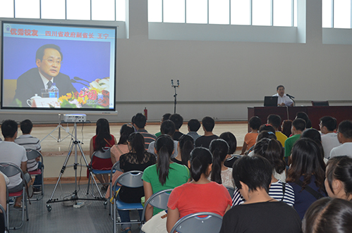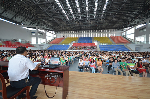 为了让2013级新生尽快熟悉大学环境,适应大学生活,明确学习目的,树立专业理想,9月1日,我院2013级新生入学教育在新体育馆隆重召开。学院党委书记黄友同志、党委副书记院长李高伟同志、党委副书记副院长黄吉秀同志、党委委员副院长余坤和同志、教务处处长易思飞、学生工作部负责人罗潇以及院团委书记刘丹同志出席入学教育大会并做了专题报告。学生工作部负责人罗潇主持大会。