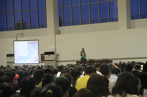 2013年9月1日晚上7点,在学院新体育管举行了一次以“榜样励志、感恩奋进”为主题教育的报告会。报告会由学工部奖助贷办公室老师张亚君主持,出席大会的有学工部副部长罗潇同志、2013级全体辅导员以及2012年至2013年度获得国家奖学金的刘杭、张文燕、2012年至2013年度获得国家励志奖学金的李雪同学,2013级两千多名新生参加了此次会议。
