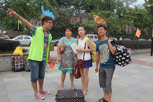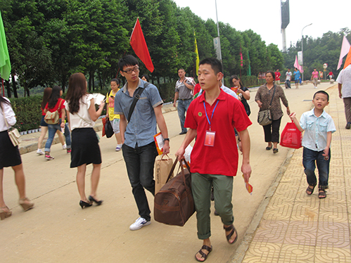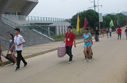 各系志愿者服务台志愿者为家长做指引志愿者为家长和新生解答疑问志愿者帮助新生拖拉行李热心细致的志愿者志愿者服务周到细致 (党政办 辜韦维 党政办新闻中心 梁丹 唐文 任梦蝶 王璐)