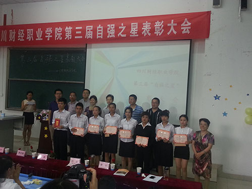 年6月18日中午12点50分,学工部在B113阶梯教室举行了学院第三届“自强之星”表彰大会。参加大会的有学院党委副书记、副院长黄吉秀,学工部副部长罗潇,院团委书记刘丹,财税金融系党支部书记祝刚,会计一系党支部书记杨勇,会计信息管理系党支部书记傅丽,工商管理系党支部书记李平,会计二系党支部书记刘波,学生书记及学生代表约300人。