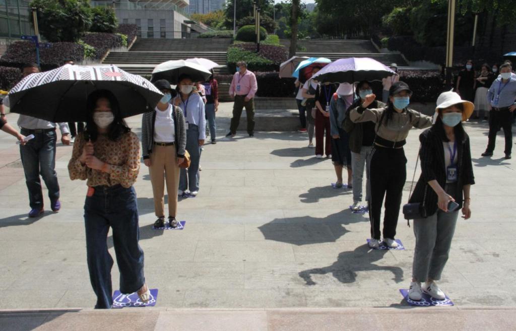 2.学生戴好口罩,手持健康卡,并保持一米左右间距,分两条通道排队进入学校。