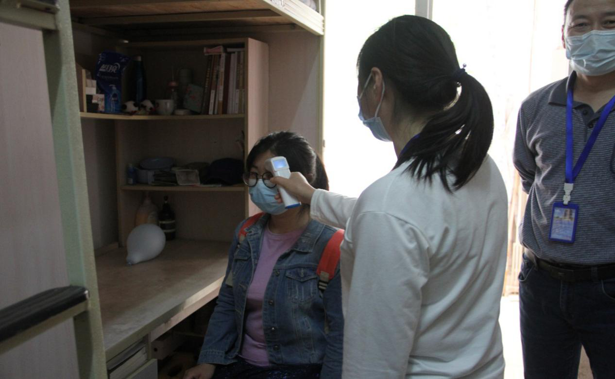 1.宿舍管理人员对学生进行体温测量,发现有学生体温异常,马上报告公寓值班人员和辅导员。