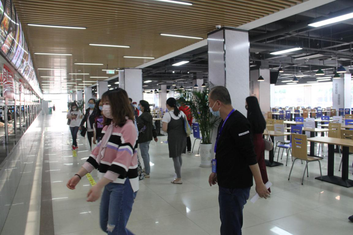 4.食堂分发套餐,学生间隔在1米排队取餐,即取即走。