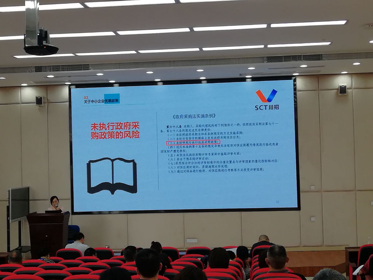为及时掌握国家政府采购政策,解决学院政府采购工作中存在的困惑,进一步规范政府采购工作,提高采购相关人员业务水平。5月19日,我院邀请四川国际招标有限责任公司总经理张帆、法务刘泽霞分别就政府采购意向公开、中小企业优惠政策进行专业解读,并就采购文件编制中的重点、难点内容进行培训。培训会由学院副院长钟用主持,全院中层干部、政府采购专业教师、学院采购评审专家、各部门采购经办人员、纪检监察办公室及国资处全体人员参加培训。