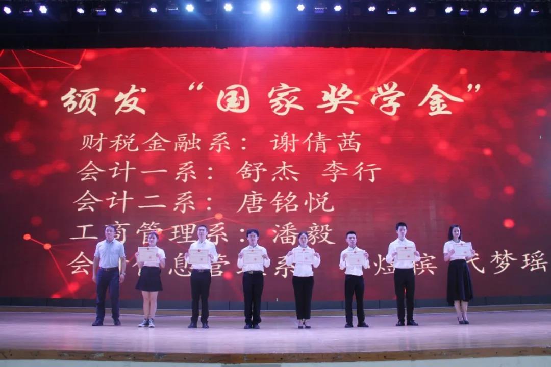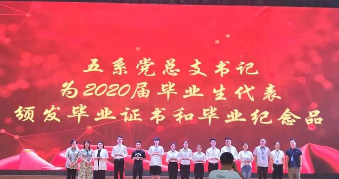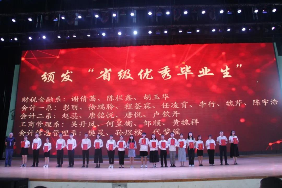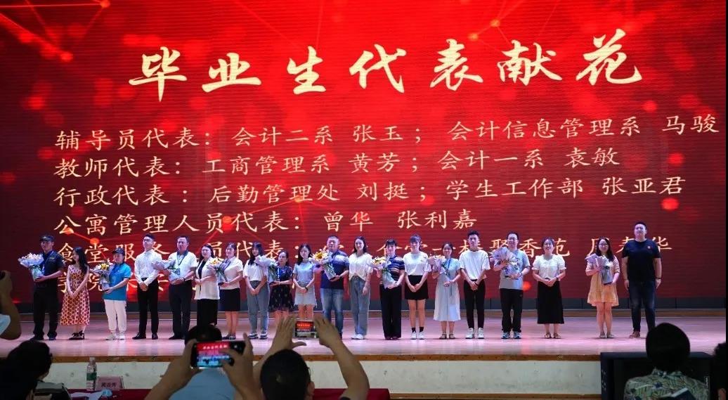 财税金融系、会计一系、会计二系、工商管理系、会计信息管理系等五个系党总支书记为毕业生代表颁发毕业证书和纪念书签。
