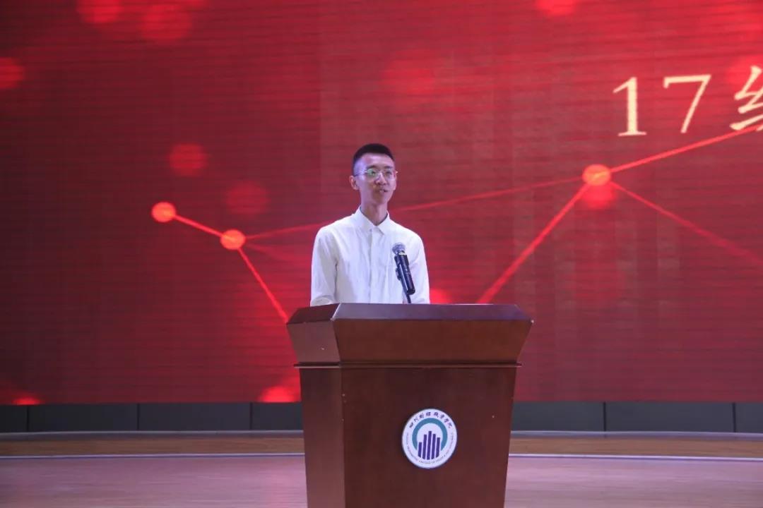 教师代表财税金融系老师王超、毕业生代表2017级市场营销1班学生何昱衡、校友代表2014届毕业生郑胜君分别上台发言,寄语祝福所有2020届毕业生前程似锦、一帆风顺。