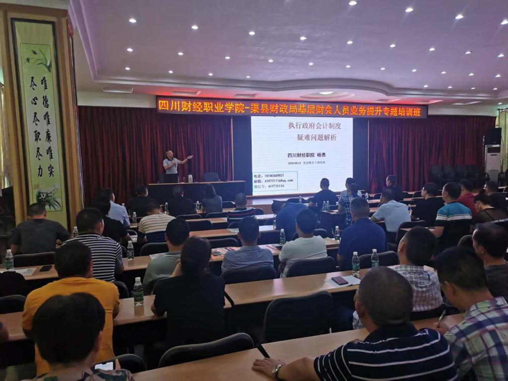 培训内容包括行政事业单位内部控制实务、预算绩效管理、政府会计疑难问题解析等专题,具有较强的可操作性和实用性。学院选派优秀师资团队亲赴渠县培训,继续教育中心主任、副教授杨勇,会计二系教师胡秀梅,财税金融系教师胡霞等采取专题辅导和案例教学搭配的方式,引导财政干部打开思路、吃透政策、活学活用、破解难题,受到培训学员的一致好评。