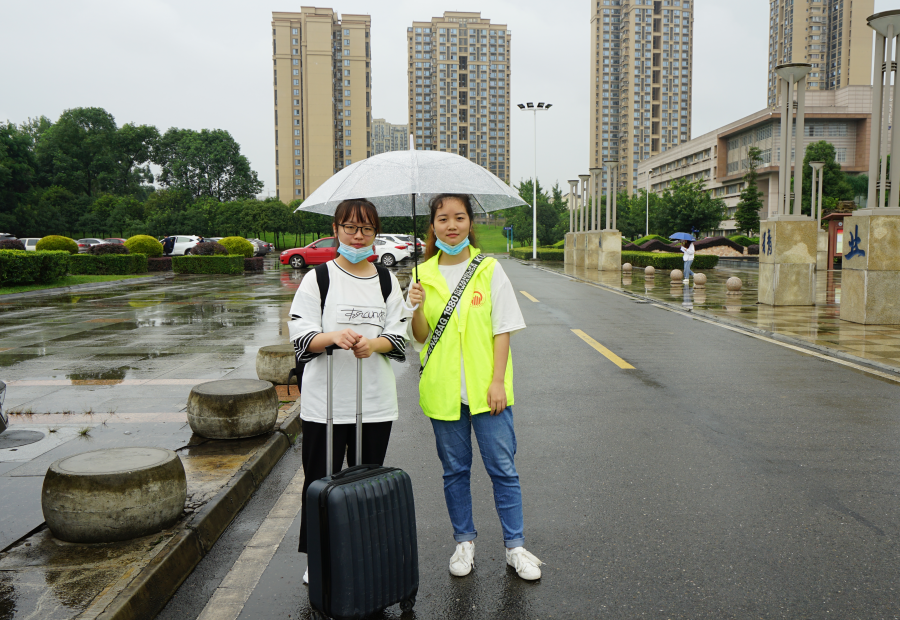 细雨如丝,秋意微凉,学院领导、老师和志愿者们一大早就在南北校门以饱满的热情期待新生的到来。明德楼电子屏温馨的欢迎标语、以家人之名·拥抱天南海北的你的宣传展板及各类欢迎横幅,让新生一走进校门,就感受到来自学院的浓烈欢迎氛围。学院贴心准备了校园专车,在地铁站接送新生。同时校内休息区备有板凳、指示牌、雨伞等暖心物品,处处都透露出学院的温情和体贴,希望带给新生如回家般的温暖。