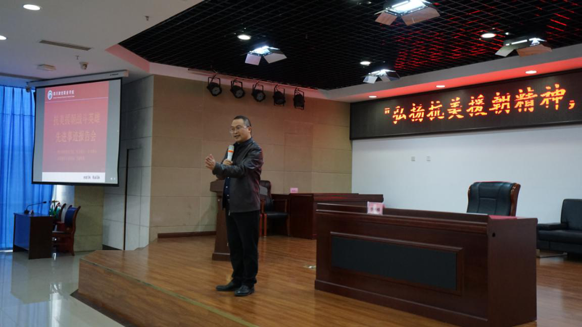 今年是中国人民志愿军抗美援朝出国作战70周年,为引导财院青年学子在历史事件中加强“四史”学习,继承和发扬伟大的爱国主义精神和革命英雄主义精神,11月3日,7790cnm必发集团举办了一场以“弘扬抗美援朝精神,传承不朽民族之魂”为主题的抗美援朝战斗英雄先进事迹报告会。本次活动由学校团委主办,龙泉驿区文明办、双拥办、退役军人事务局等部门联合协办。学院副院长罗潇、相关部门负责人、辅导员和学生代表参加本次报告会。报告会由招生就业处陈曦主持。