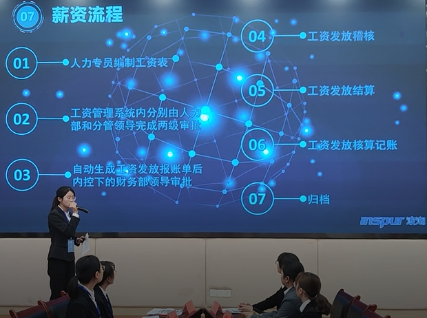 经过层层选拔,我校两支队伍均冲出初赛,成功晋级决赛。决赛前,老师们和同学们集思广益,对建设方案和PPT反复讨论,提出建议和修改意见,同学们彻夜对各个环节进行反复修改、推敲和演练;比赛中,同学们以情景剧、情景对话、快板说唱等多种表现形式,用生动的语言和丰富的专业知识展示了各自的财务共享中心建设方案。比赛进行中,我校的必胜二队获得了评委们很高的赞誉,通过比赛收获荣誉的同时,同学们的PPT制作、语言表达、团队协作和临场应变等综合能力均得到了很好的锻炼和提升。