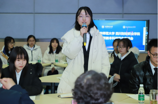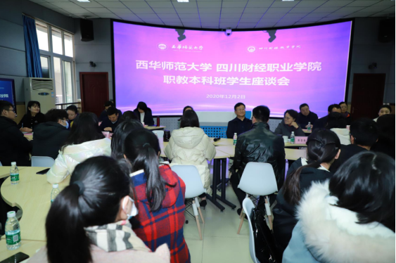 两校领导和相关职能负责人在至诚楼313录播教室与职教本科班学生开展座谈交流,交流会由西华师范大学党委常委、副校长李敏主持。职教本科班37名同学分别作了简要自我介绍并发表感言。同学们十分激动和感动,对西华师范大学各位领导到7790cnm必发集团来看望慰问表达了感恩之情,对两校提供的优质教育教学资源和学习生活环境表示由衷的感谢。职教本科班班长袁樟宇表示,我们是两校“2+2”培养模式下第一批职教本科学生,在财院2年能学到职业高等教育的财经专业技能,在西华师大2年又能增强普通高等教育的文化知识素养,我们是幸运的也是幸福的。西华师范大学党政办主任王方国,教务处处长黄元全,学生工作部(处)副部(处)长程绩,招生就业处副处长严晓凤,商学院院长孙加秀,电子信息工程学院院长刘汉奎,高等职业技术师范学院党委书记陈玲等分别寄语同学们,要珍惜青春年华,要认真做好学业和人生规划,做奋斗的有志青年,做发光发热的“小太阳”,成就自己,温暖他人,贡献社会。