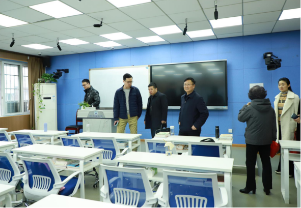 王元君一行先后现场考察参观了职教本科班学生公寓“博学苑”、学生食堂“聚香苑”和智慧化教室“至诚509”,对我校提供给职教本科班学生良好的学习生活条件给予充分的肯定和高度的赞赏。