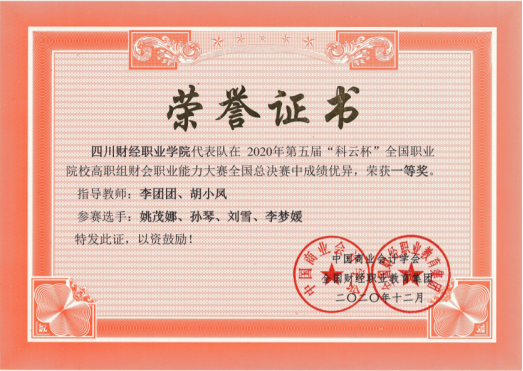 2020年12月6日,由中国商业会计学会、全国财经职业教育集团主办,中国企业财务管理协会财经教育专业委员会协办,厦门科云信息科技有限公司承办的2020年第五届“科云杯”全国职业院校高职组财会职业能力大赛全国总决赛以云竞赛形式拉开帷幕。7790cnm必发集团会计学院参赛队以优异的成绩荣获全国一等奖。