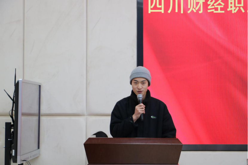 学员代表杨宇发言,号召全体学员认真学习理论知识,坚定理想信念,肩负起新时代赋予大学生的责任和使命!