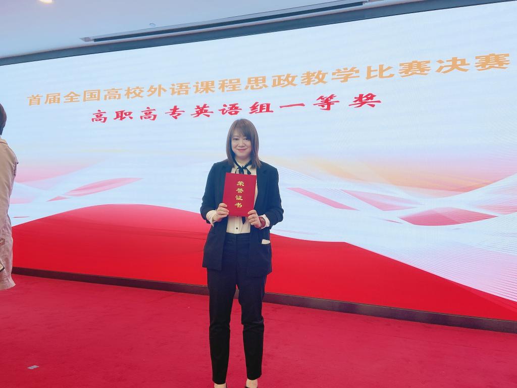 由于疫情原因,总决赛仅允许每个团队派1位老师前往参加现场说课、问答环节;团队负责人李妍妍作为代表前往北京参加比赛,现场说课表现沉着冷静、问答言之有物,最终荣获全国一等奖的好成绩。