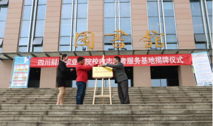 在揭牌仪式上,图书馆(档案馆)馆长甘立明和团委副书记(主持工作)马宁共同为校内志愿者服务基地揭牌,图书馆(档案馆)副馆长牛晓兰和团委朱珠共同为“书香财苑”志愿者代表们发放志愿者积分证,标志着我校第一个校内志愿者服务基地正式成立。校内志愿者服务基地成立后,将推动校内志愿者服务工作的快速发展,协助图书馆做好全校师生的服务工作。在志愿者代表发言环节,学生代表为学院对志愿者工作的重视和支持备受鼓舞,并代表“书香财苑”志愿者服务分队向全体师生做出了服务承诺。随后,学生工作部副部长(主持工作)刘丹为“书香财苑”志愿者服务分队授旗,鼓励同学们积极创新、与时俱进地开展各类志愿者服务活动。