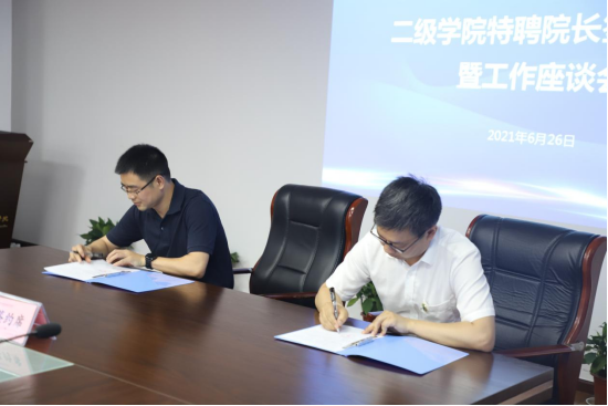 6月26日,学院举行二级学院特聘院长签约仪式,力邀西南财经大学谭洪涛、周克清、李文勇、徐加根等四位教授加盟学院建设,共同助力学院高质量发展。学院党委书记张华、副院长符刚、全体党委委员,二级学院院长及专业带头人,相关职能部门负责人出席活动。签约仪式由学院副院长易思飞主持。
