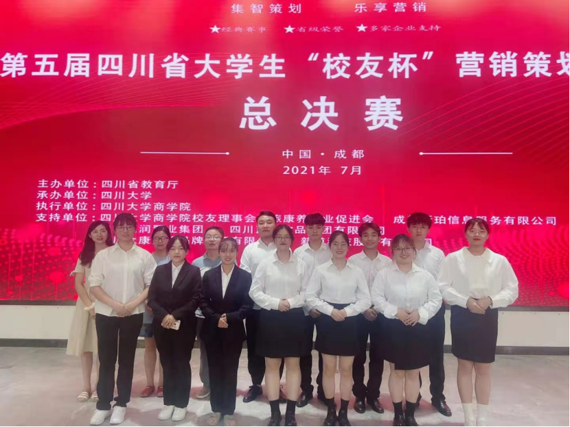 2021年7月18日,由四川省教育厅主办的第五届四川省大学生“校友杯”营销策划大赛的总决赛,在四川大学国家双创示范基地顺利举行。由工商管理学院6名指导老师12名学生组成的三支参赛队伍经过长达2个多月的高强度训练,经历网络初赛和现场决赛的紧张角逐。最终,由梁丰、霍瑞超老师指导的白迪菡、吕娅、岳佳慧、赵瑞参赛团队脱颖而出,在高职组总决赛中一举斩获一等奖,由程宇、余奇训老师指导的王三春、陈萌、熊朝威、周宇参赛团队和由向黎、薛永莉老师指导的代琦、蔡豪、张国敏、陈俊杰参赛团队均获得二等奖的佳绩。