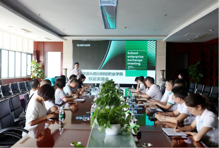 为进一步推进校企深度合作,2021年7月19日下午,由学院党委委员、副院长易思飞带队,对外合作处处长叶剑明、教务处处长兼会计学院院长李代俊、工商管理学院副院长刘瑶、工商管理学院副院长梁小晓、会计学院副院长朱敏、电子商务教研室主任吕世伟、移动商务教研室主任赵乾坤及商务数据分析教研室主任唐雨薇等一行9人前往全友家私崇州工业园区交流和洽谈。全友家私总裁办高总、财务中心姚总、人力资源、电商、营销等相关部门经理出席了此次交流会。