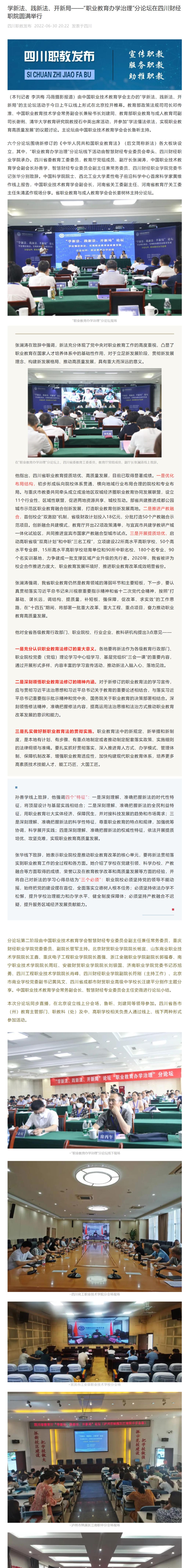 四川职教发布:学新法、践新法、开新局——“职业教育办学治理”分论坛在四川财经职院圆满举行