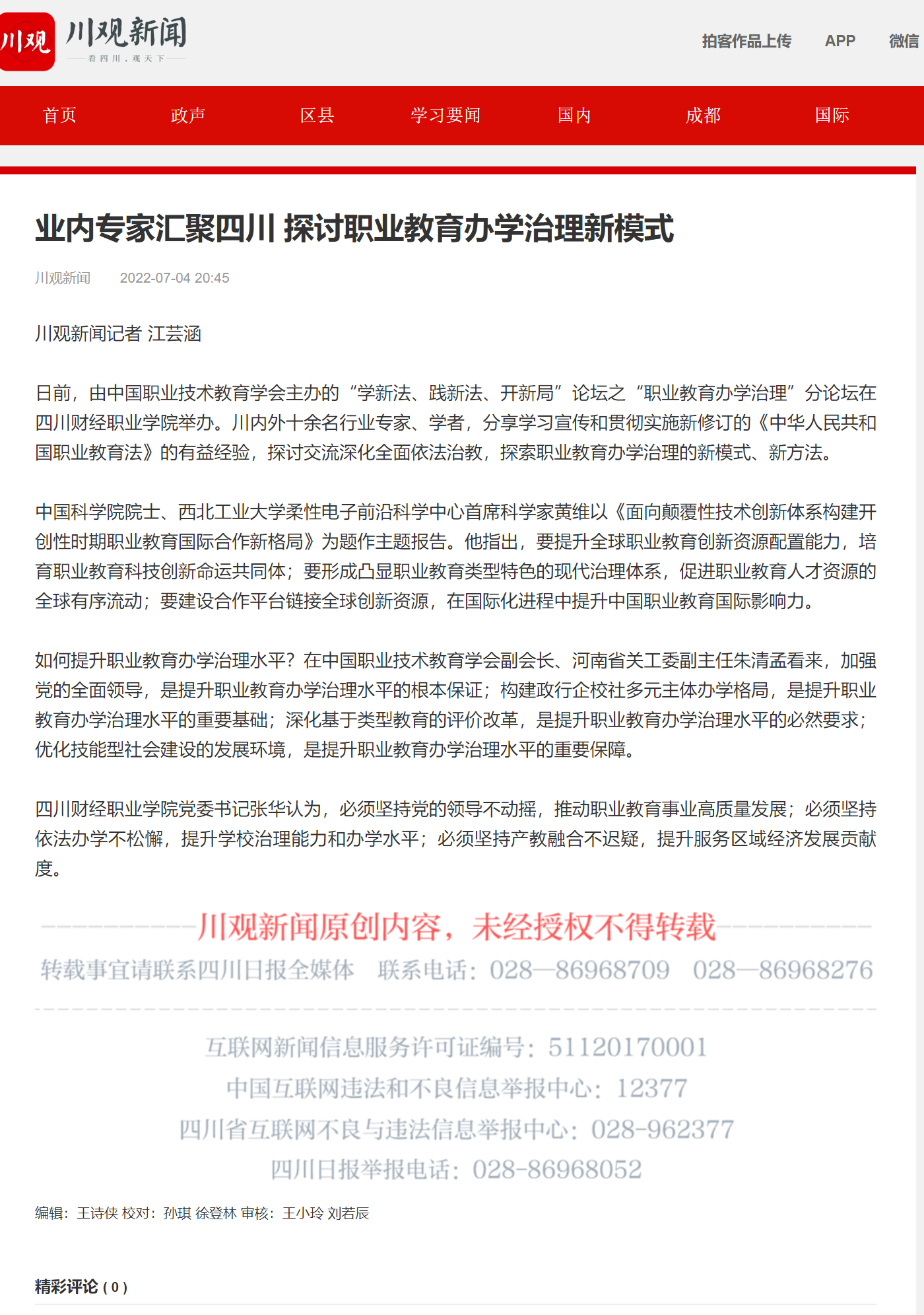 川观新闻:业内专家汇聚四川 探讨职业教育办学治理新模式