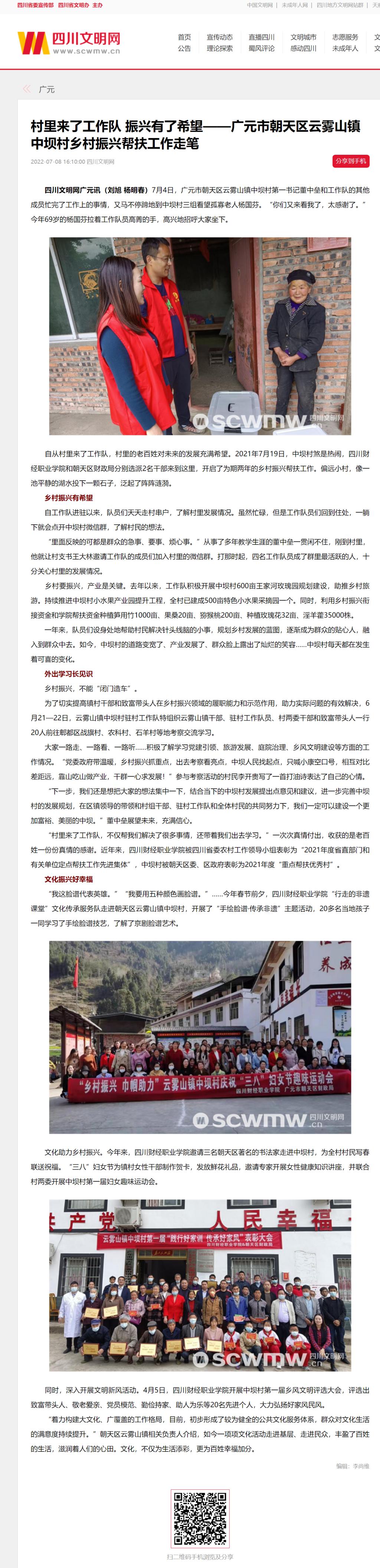 四川文明网:村里来了工作队 振兴有了希望——广元市朝天区云雾山镇中坝村乡村振兴帮扶工作走笔