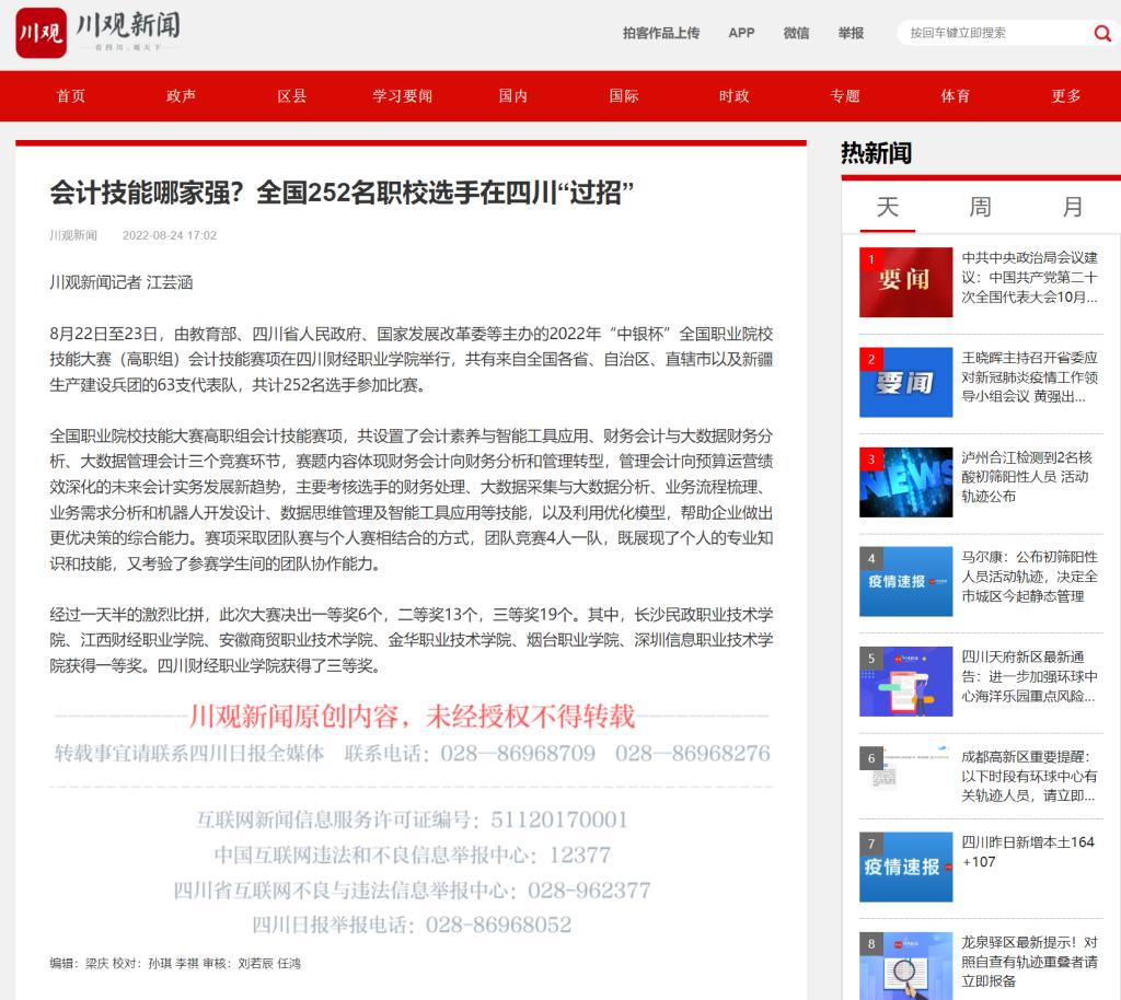 川观新闻:会计技能哪家强?全国252名职校选手在四川“过招”